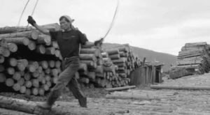 Screen capture of a North Korean laborer working in a Siberian logging camp. Source: VICE documentary Cash for Kim: North Korean Forced Laborers in Poland on the VICE website at https://tinyurl.com/yafgtlow.