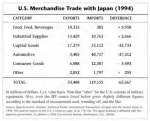 1. The average Japanese has been buying slightly more American products than the average American has been buying Japanese products, but the American population is twice as large as the Japanese.
