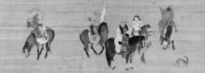 Detail from Kublai Khan on a Hunting Expedition. Painted in the year 1280 by the Chinese court artist Liu Guandao. The scroll is located at the National Palace Museum, Taipei. Source: Wikimedia Commons at https://tinyurl.com/3ewe3jk4.