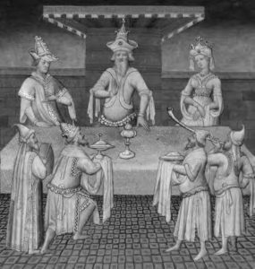A city under Mongol siege. From the illuminated manuscript of Rashid ad-Din’s Jami al-Tawarikh. Edinburgh University Library. Source: Wikimedia Commons at https://tinyurl.com/2fdanvs9.